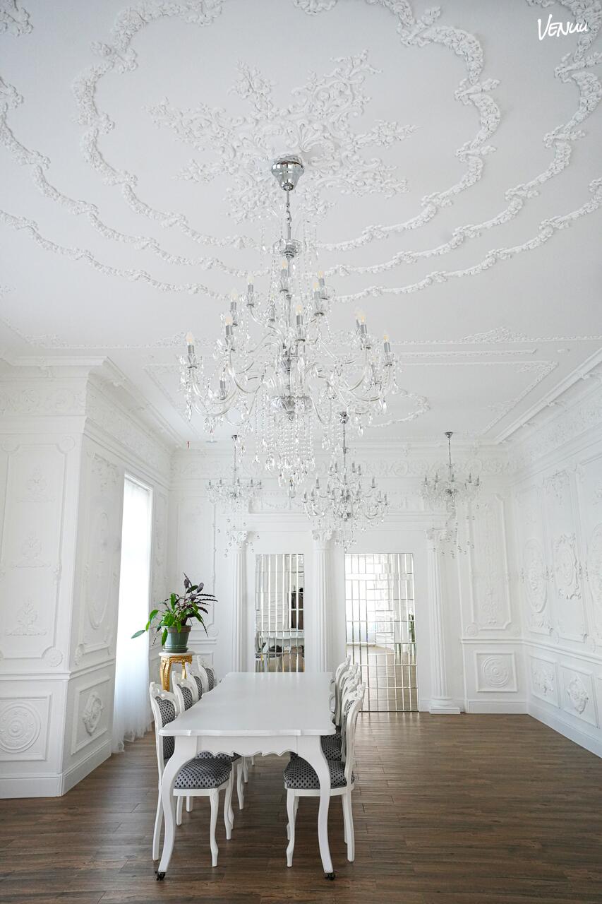 • 5 Kronleuchter & kunstvolle Stuckverzierungen für eine luxuriöse Ästhetik