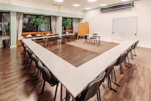Der Hektor Space in der Forum Factory Berlin bietet auf 95 m² einen modernen Rahmen für professionelle Meetings und kreative Workshops im Herzen von Berlin-Mitte. Die Location nahe Checkpoint Charlie überzeugt durch ihr minimalistisches Design und ist für bis zu 50 Personen ausgelegt. Ausgestattet mit aktuellster Technik wie TV-Display, Videokonferenz-System und Whiteboards sowie einem Fokus auf Nachhaltigkeit, ist dieser Raum die ideale Wahl für produktive Team-Offsites oder als Breakout-Room für größere Business-Events.