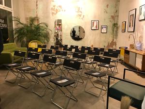 Das Marc-Antoine Hairstudio & Gallery im Herzen von Prenzlauer Berg vereint minimalistisches Loft-Design mit einer inspirierenden, künstlerischen Atmosphäre. Auf 62 m² bietet diese außergewöhnliche Location Platz für bis zu 50 Personen und ist ideal für exklusive Pop-up-Events, Ausstellungen, kleine Firmenevents oder kreative Workshops. Mit zwei separaten Räumen, einer voll ausgestatteten Küche sowie der Freiheit, eigenes Catering und Getränke mitzubringen, bietet dieser Concept Store den perfekten Rahmen für individuelle Veranstaltungen mit echtem Berliner Kiez-Flair.