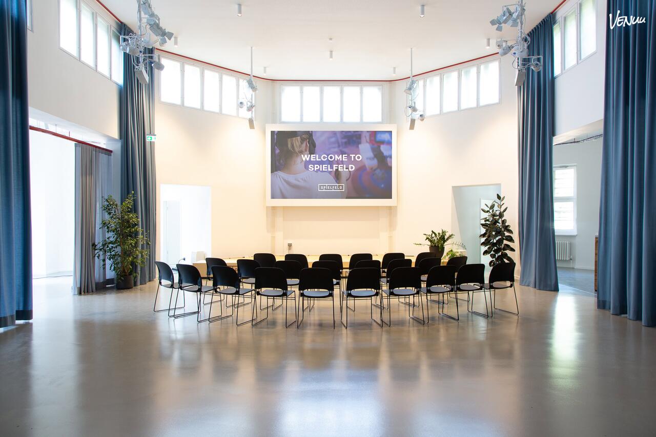 Mit drei großen Eventflächen und acht flexibel nutzbaren Meeting‑ und Workshopräumen eignet sich Spielfeld ideal für ein breites Spektrum an Formaten: von kleinen Firmenworkshops und Team‑Offsites über mehrtägige Hackathons bis hin zu PR‑Events, Gala Dinners oder Konferenzen mit bis zu 250 Personen. Dank leistungsstarker Hybrid‑ und Videokonferenztechnik lassen sich Meetings, Präsentationen und internationale Sessions problemlos digital oder im Hybrid‑Modus durchführen.