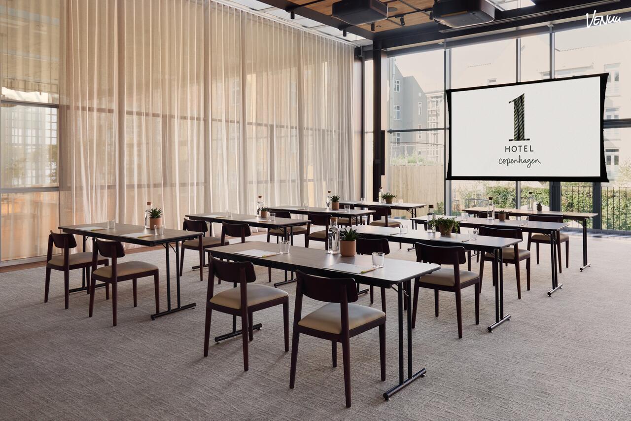 1 Hotel Copenhagen tilbyder nogle af byens mest inspirerende rammer for møder, konferencer og events. Beliggende i det tidligere Hotel Skt. Petri, præcis hvor det historiske Latinerkvarter møder byens puls, forener hotellet moderne mødefaciliteter med et unikt biofilt design. Her er de traditionelle, sterile konferencerum skiftet ud med lyse lokaler fyldt med naturlige materialer, masser af dagslys og levende planter. Atmosfæren er skabt til at fremme kreativitet, fokus og velvære, hvilket gør det til det ideelle valg for virksomheder, der ønsker en professionel base med en grøn samvittighed.
