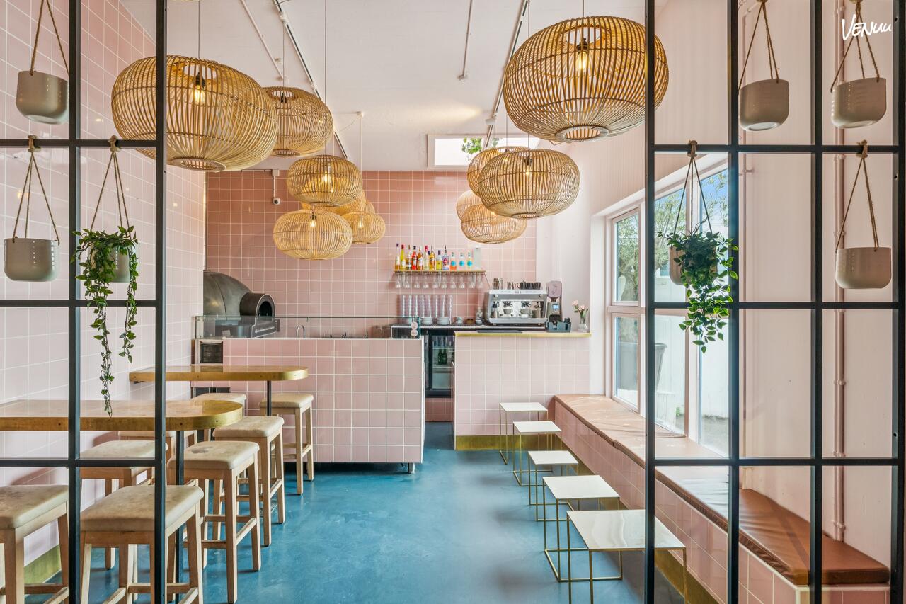 Capeesh’ café er en æstetisk perle, hvor lyserøde fliser, naturlige materialer og grønne planter skaber en varm og indbydende atmosfære. Med sin stilrene indretning og afslappede stemning egner caféen sig ideelt til mindre receptioner, PR-events, produktlanceringer eller intime netværksarrangementer.