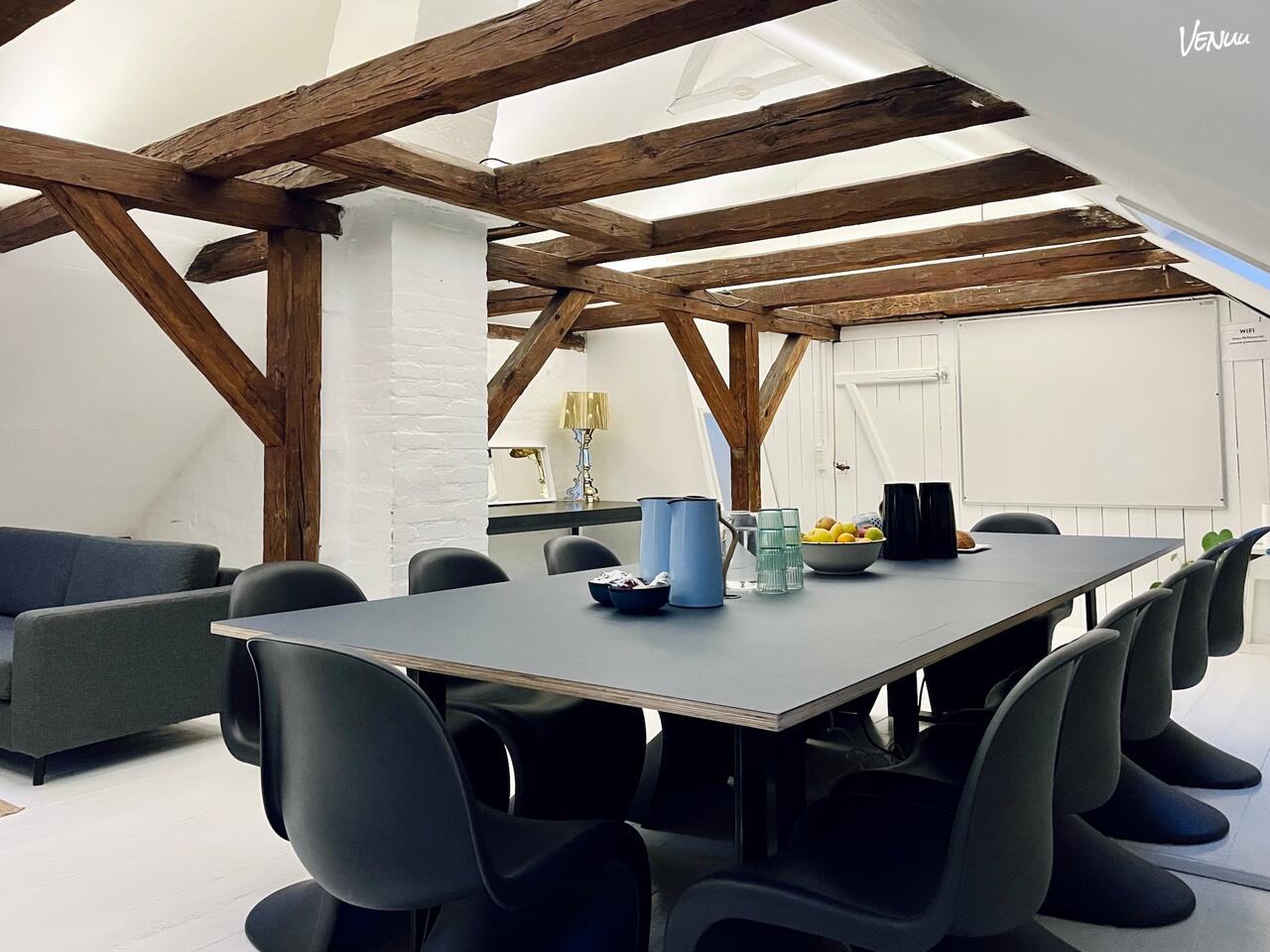 "The Loft" er OFFICE Kødbyens største og mest alsidige lokale, ideelt til større workshops, præsentationer eller selskaber. Dette unikke rum er beliggende i Den Grå Kødby (Slagtehusgade 20), hvilket giver en autentisk og rå Kødby-stemning med masser af plads og lys. Med en kapacitet på 2 til 15 personer er The Loft perfekt, når I har brug for ekstra albuerum og en inspirerende atmosfære til større gruppedynamikker.