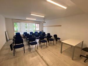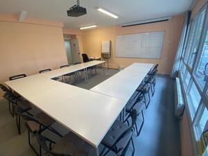 Un espacio moderno y bien equipado para formaciones dinámicas. Con luz natural y un ambiente profesional, es perfecto para cursos, talleres y presentaciones sin distracciones.