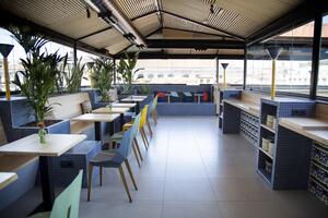 - Rooftop views or indoor lounges