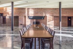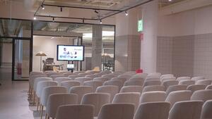 Spacious and adaptable event space with modern AV features and multiple configurations. Ideal for larger business events, conferences, or corporate celebrations requiring a flexible setup. Modern, professional, and ideal for companies.