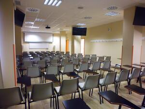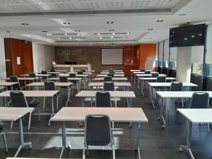 Un aula preparada para sesiones formativas, conferencias y reuniones estratégicas. Su ambiente acogedor y su distribución flexible permiten adaptar el espacio a diferentes formatos, asegurando comodidad y funcionalidad en cada evento.