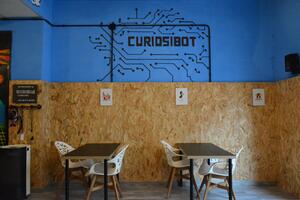 Antiguo taller de los años 60 que se ha transformado en un espacio gastronómico. Disponen de grandes pantallas que pueden servir para presentaciones.