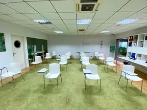 Sala de formación que puede disponer de diferentes montajes según las necesidades para tu evento. Perfecta para pequeñas conferencias.