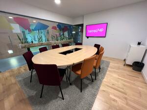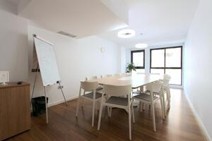 Cuenta con una mesa central, pantalla y una flipchart desde donde realizar reuniones en grupo, tanto para empresas como particulares.