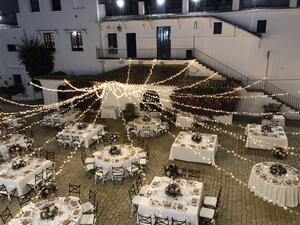 Este Cortijo tiene varios salones para bodas donde podrás celebrar una gran cena. Este espacio íntimo y rústico, con vigas de madera y detalles tradicionales, ofrece un ambiente romántico y acogedor para celebrar tu amor.