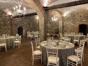 Salón en la zona más histórica de esta masía. Celebra el banquete de bodas en un espacio singular y diferente. Un espacio acogedor con historia, rodeado de viñedos y con un ambiente íntimo para tu gran día.