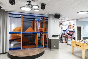 Lugar perfecto para cumpleaños infantiles. La sala dispone de un parque de bolas, futbolín, maquinas arcade con cientos de juegos y baúl con disfraces.