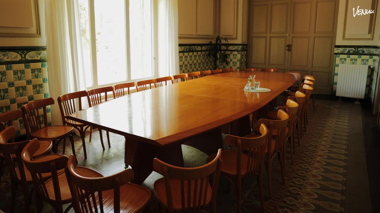 Esta sala, diseñada para la concentración y la inspiración, ofrece una gran flexibilidad de aforo: puede albergar hasta 20 personas en una gran mesa para reuniones ejecutivas o hasta 65 personas en formato aula/conferencia, aprovechando la galería adyacente, donde puede instalarse una tarima como escenario.