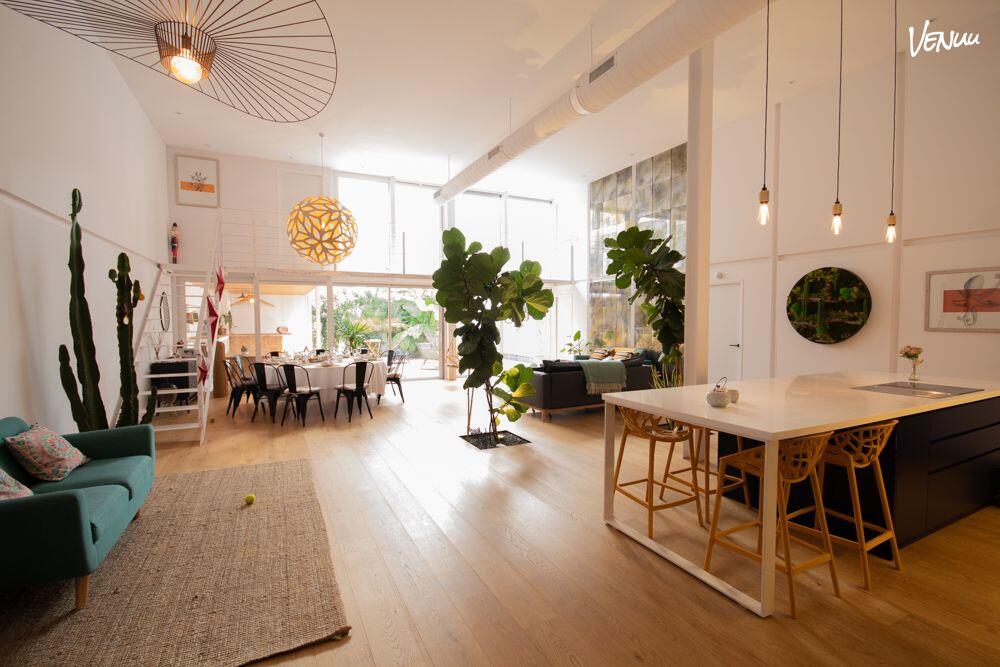 Cuenta con una gran zona de salón que incluye una cocina abierta, ideal para show cookings, eventos interactivos y cenas privadas. Su terraza de terracota, equipada con un bar de estilo tiki, una mesa de comedor al aire libre con asientos acolchados y una piscina rodeada de plantas vivas, crea un ambiente perfecto para reuniones exclusivas y producciones únicas.