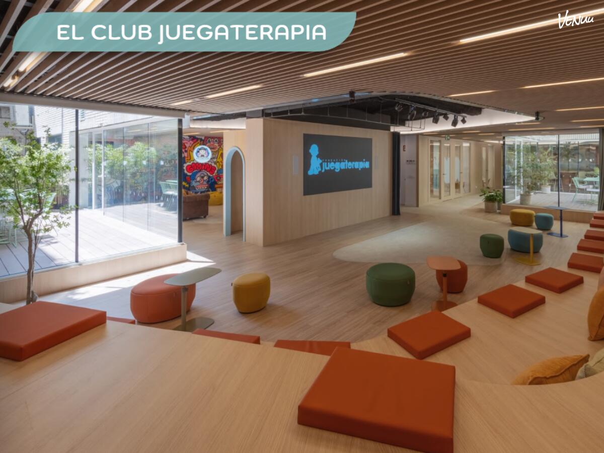 El Anfiteatro de la Fundación Juegaterapia es un espacio disruptivo y lleno de energía, diseñado específicamente para romper con la monotonía de las reuniones tradicionales. Ubicado en un entorno privilegiado de Madrid, este venue destaca por su arquitectura fluida y el uso de materiales cálidos como la madera, que crean una atmósfera acogedora e inspiradora para eventos corporativos, presentaciones de producto y ponencias de alto impacto.