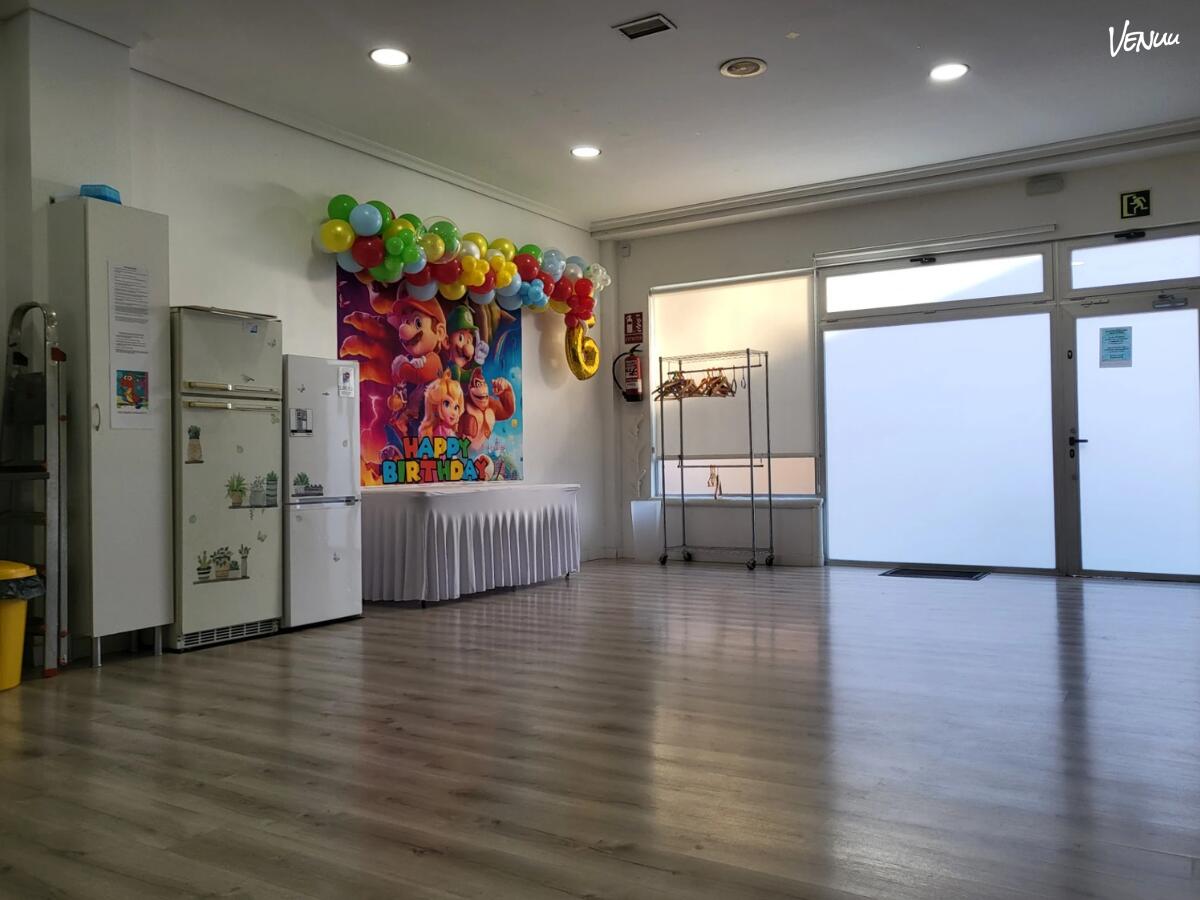 El espacio destaca por su inteligencia funcional, dividiéndose en zonas especializadas para cubrir todas las necesidades de tu fiesta. Contamos con una zona de cocina office totalmente equipada (horno, microondas, dos neveras con congelador y cafetera Tassimo) para que organices tu catering a tu gusto. Para el ocio, disponemos de un espectacular parque de bolas a doble altura, mini canasta, portería y balancines.Pero la diversión no tiene edad: nuestra zona de juegos incluye clásicos como el Tetris gigante, tres en raya y futpala, ideales para fomentar la interacción entre todos los invitados.