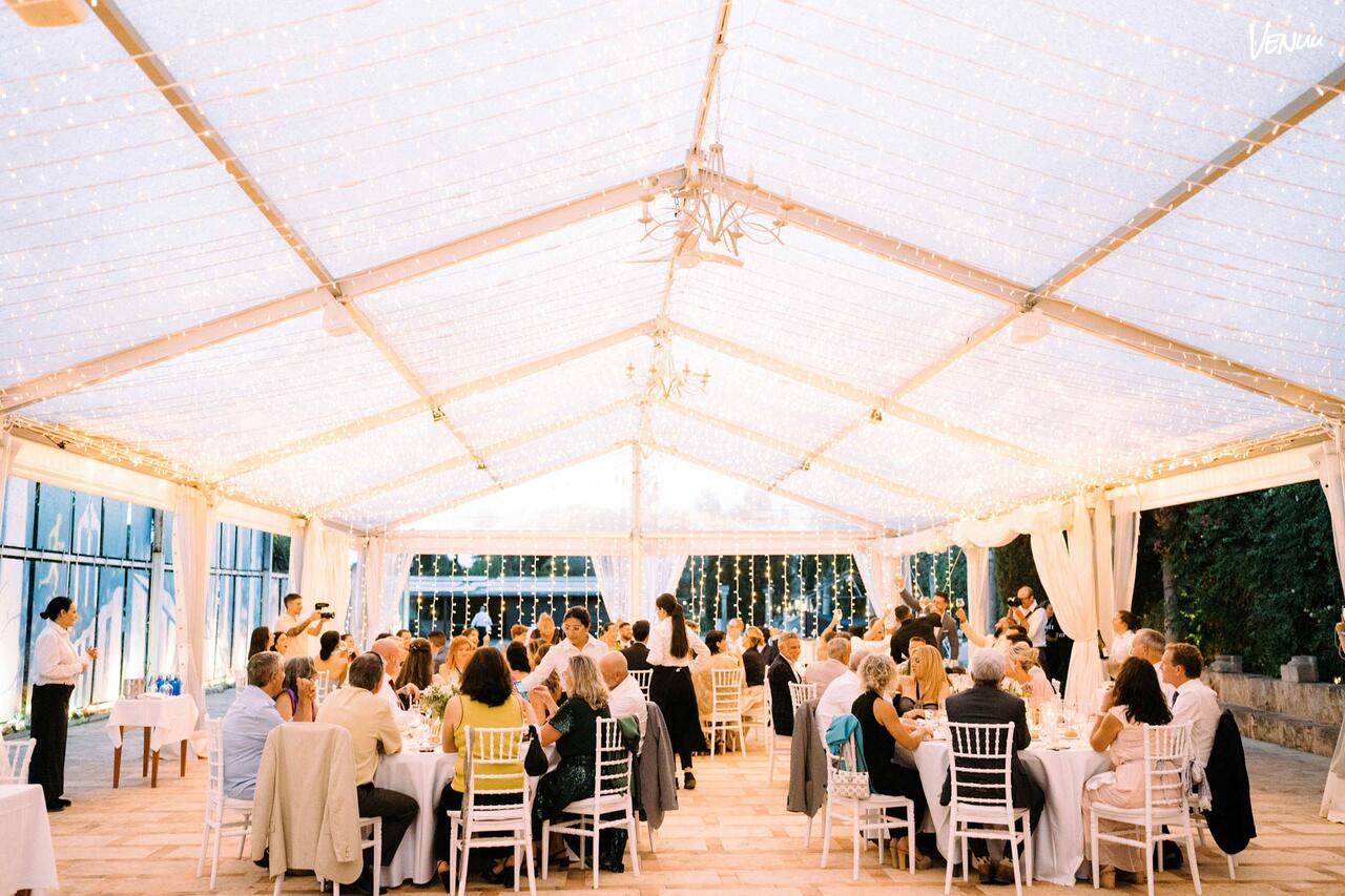 El Gran Mural, inspirado en los mitos de la antigua Grecia, es uno de los escenarios más emblemáticos de Es Revellar Art Resort. Bajo una gran carpa transparente con capacidad para hasta 180 comensales, este espacio permite celebrar el banquete de boda o la fiesta posterior envueltos por la luz, la vegetación y la atmósfera artística de los jardines.
