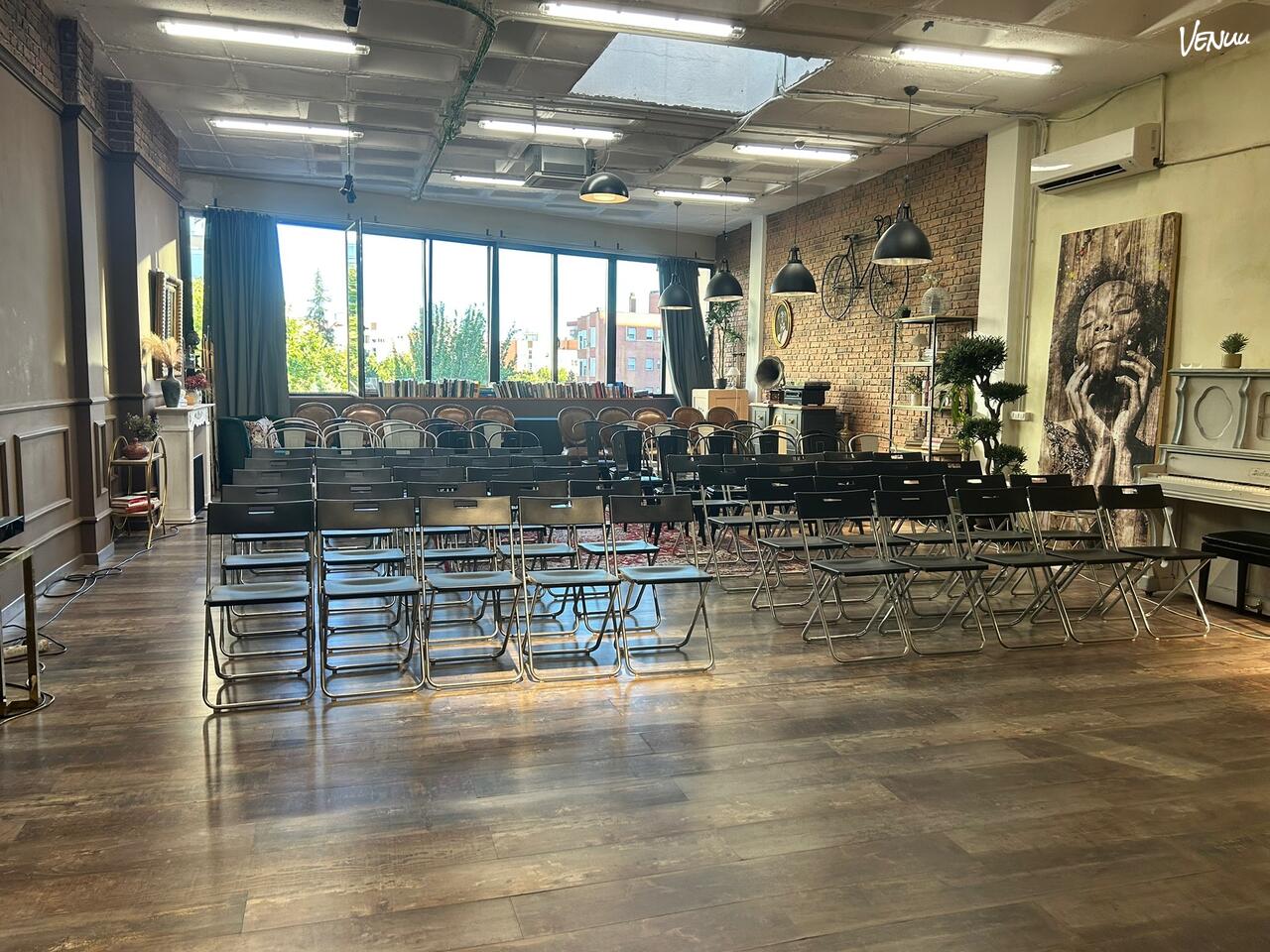 Si buscas alquiler de sala para reuniones o presentaciones en Madrid, IRON 33 combina amplitud, luz natural y funcionalidad.