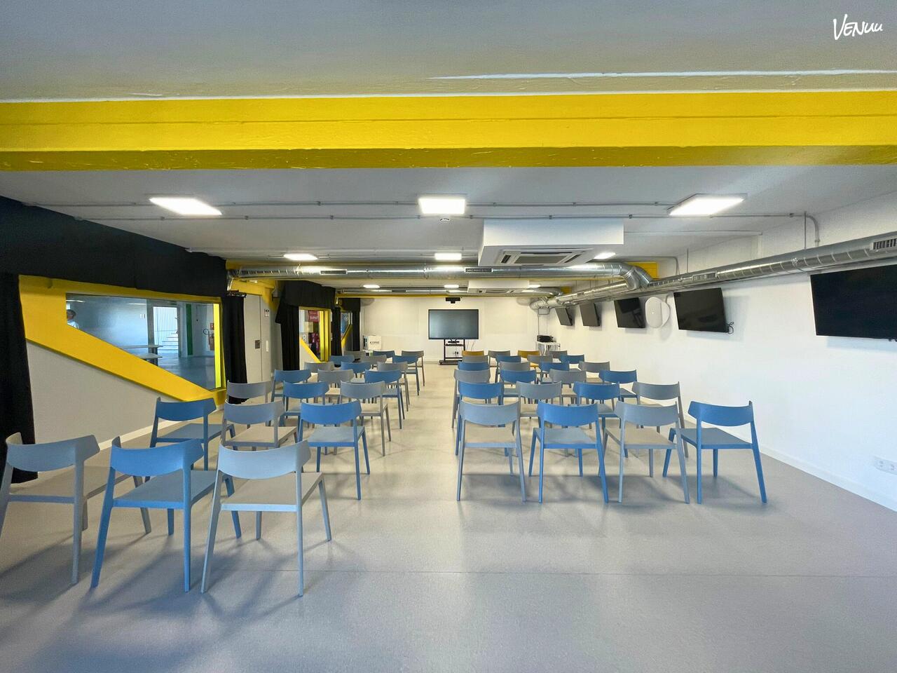 La Sala Polivalente 2 es un espacio amplio, luminoso y diseñado para dar vida a eventos con impacto. Desde conferencias y presentaciones hasta charlas, formaciones o encuentros corporativos, esta sala se adapta a todo.
