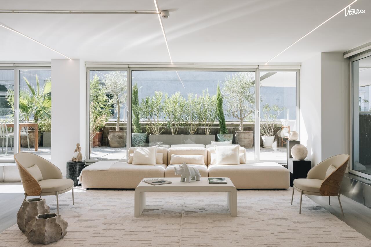 Es un espacio singular con un estilo minimalista, combina materiales modernos, paredes blancas y grandes ventanales que llenan el espacio de luz natural y está diseñado para todo tipo de eventos y acciones de carácter multidisciplinar. La sala está totalmente preparada para el uso exclusivo y diferenciador de todo aquel que quiera disfrutar de un evento.