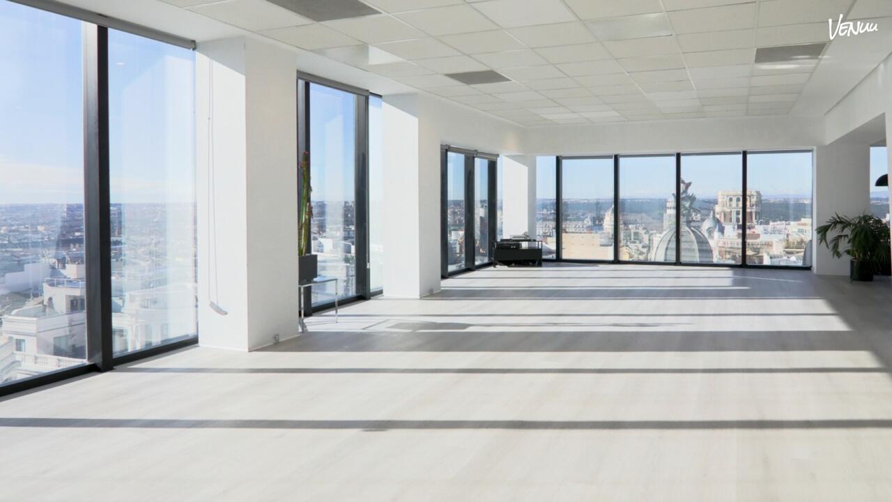 Desde la decimotercera planta, la cristalera que envuelve un espacio de 150 metros cuadrados ofrece una panorámica de la capital sin barreras arquitectónicas. En esta sala situada en pleno centro de la ciudad, organizamos todo tipo de eventos y acciones corporativas, adaptando el espacio a las necesidades y deseos de las propuestas de nuestros clientes. Ofrecemos un asesoramiento premium, incluyendo un apoyo integral en todo el desarrollo y ejecución de los mismos.
