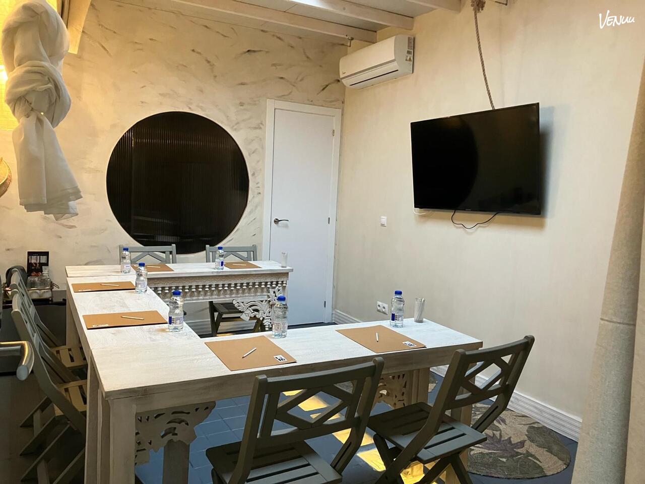 La infraestructura del Hotel Life destaca por su adaptabilidad total. Contamos con salas con capacidad para grupos de 6 a 8 personas, configurables según el formato de tu reunión: desde disposición escolar o en "U" hasta mesa imperial. El elemento diferenciador es nuestra arquitectura circular: todas las salas se organizan en torno a un espectacular jardín interior. Este oasis de calma, con una cuidada decoración de aires africanos, baña los espacios de luz natural y sofisticación, ofreciendo un entorno relajado que potencia el bienestar de los asistentes.
