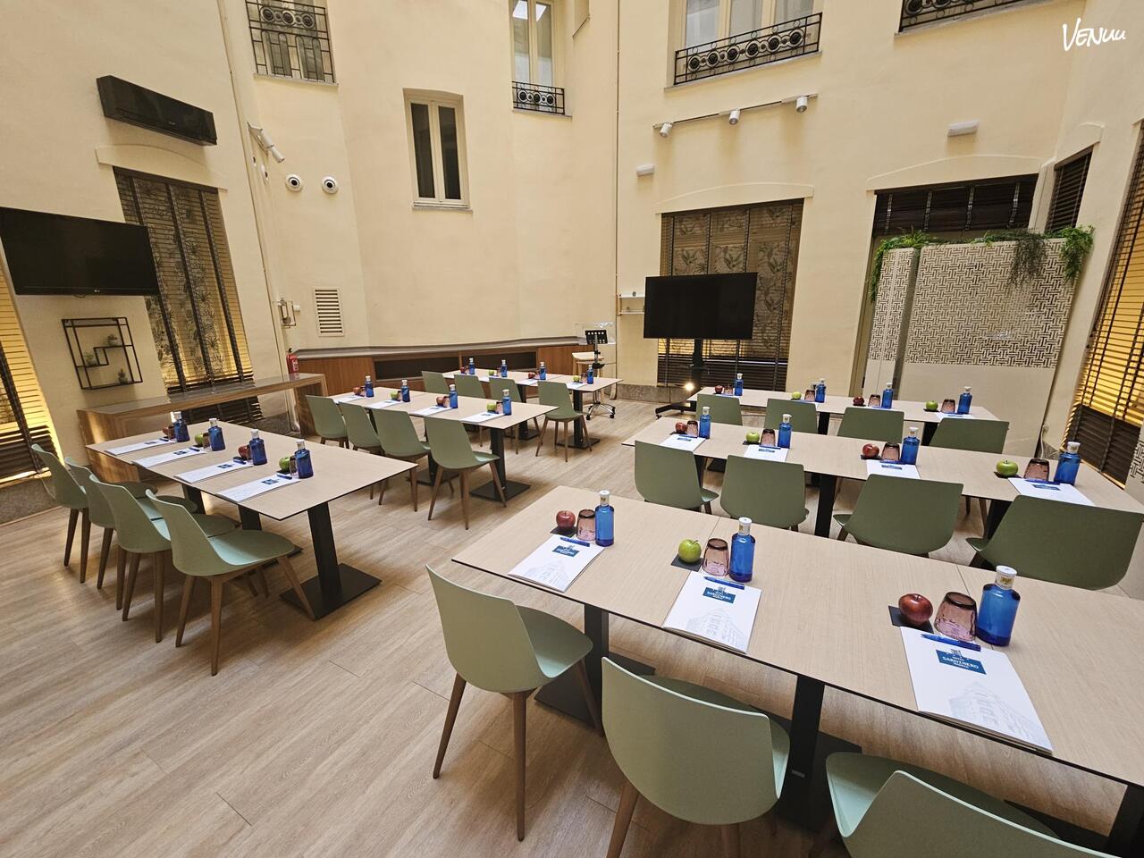 Descubre Patio El Puntal del Hotel Sardinero Madrid, un espacio cubierto y moderno de 60 metros cuadrados con luz natural, ideal para acoger todo tipo de eventos. Con capacidad para 50 personas, este patio es perfecto para aniversarios, comidas familiares, cenas de empresa y muchas otras celebraciones.