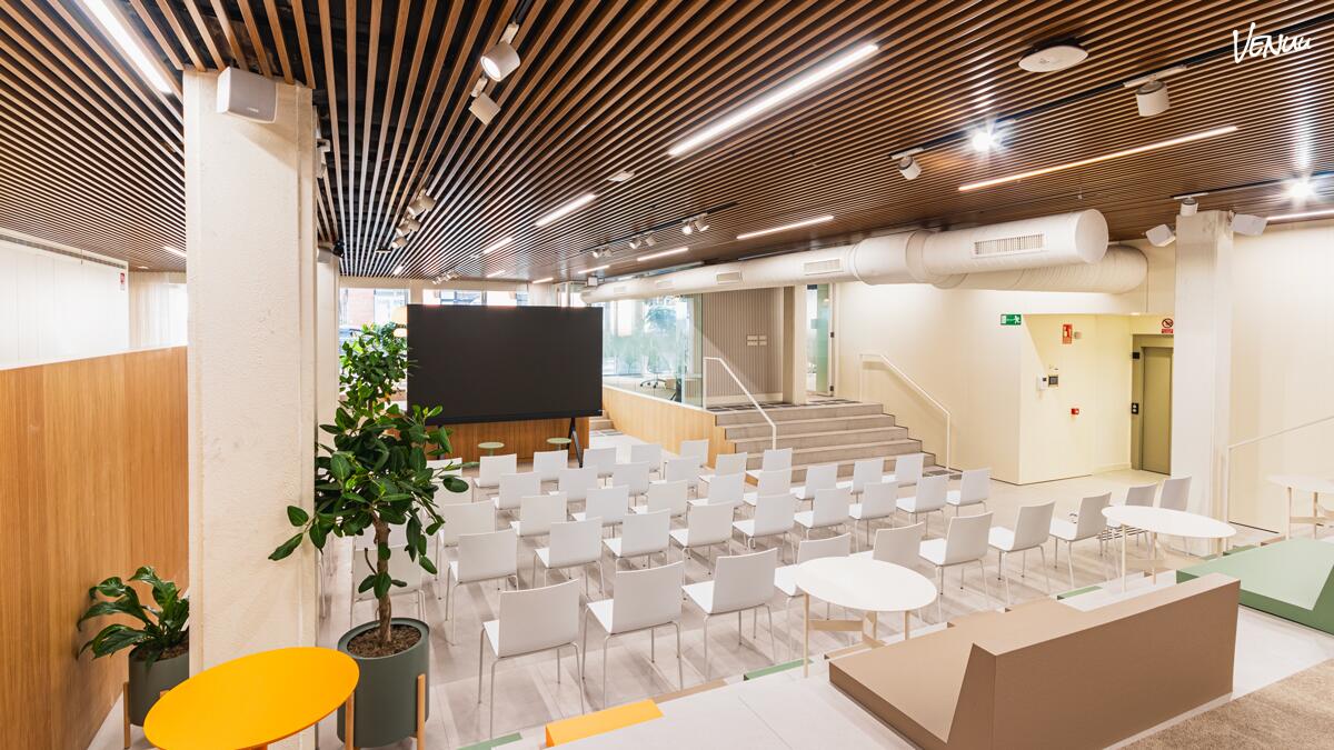 La Sala Ágora en IMPACT HUB Vizcaya es un espacio transformador, diseñado para elevar cualquier evento a una experiencia de alto impacto y máxima interactividad. Su estructura evoca la de un moderno anfiteatro, con gradas y una distribución que fomentan la relación visual y la participación fluida de los asistentes. Esta configuración única la hace perfecta para formatos que buscan la máxima conexión, como conferencias inspiradoras, grandes reuniones o workshops inmersivos, proporcionando un entorno donde cada voz y cada mensaje resuenan.