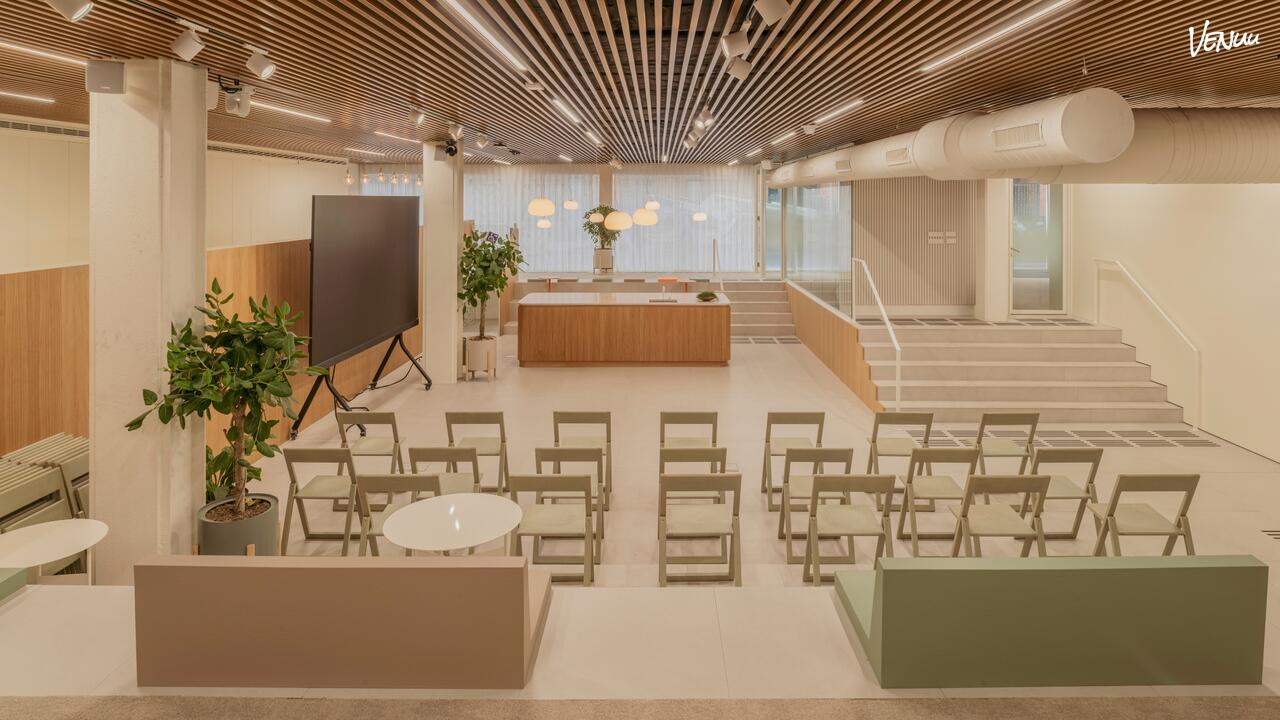 Este espacio demuestra una gran versatilidad, acogiendo a una amplia audiencia tanto en formatos que requieren asientos fijos y enfoque (tipo teatro) como en eventos más dinámicos y sociales (tipo cóctel). Pero su valor diferencial más profundo reside en su ética: al elegir el Ágora, te alineas con una empresa B Corp certificada y Cero CO2, que opera con energía 100% renovable e implementa iniciativas de diseño sostenible para garantizar que tu evento sea tan responsable como memorable.