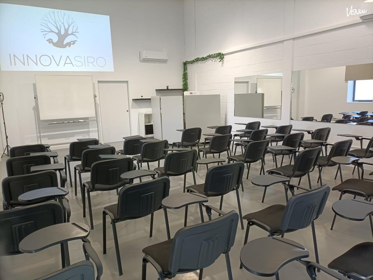 La joya del centro es nuestra sala de formación, un espacio con layout flexible que puede acoger cómodamente a grupos de entre 35 y 40 personas. La sala está equipada con tecnología de vanguardia para garantizar que tu mensaje llegue con claridad: proyector audiovisual de alta calidad, pizarra y sillas con pala integradas para facilitar la toma de notas y el confort de los asistentes durante jornadas intensivas. Esta polivalencia la convierte en el escenario idóneo para sesiones de team building, talleres dinámicos, presentaciones corporativas o seminarios técnicos.
