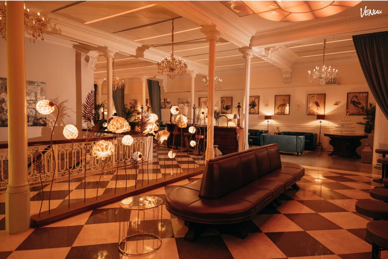 El espacio ofrece múltiples zonas adaptables, desde su elegante área diáfana para cócteles y encuentros informales, hasta el Balcón Flamenco, diseñado para espectáculos y presentaciones con un toque artístico. Además, cuenta con la Golden Hall, una lujosa barra de bebidas que mezcla detalles históricos y modernos, perfecta para crear momentos exclusivos en un entorno sofisticado.