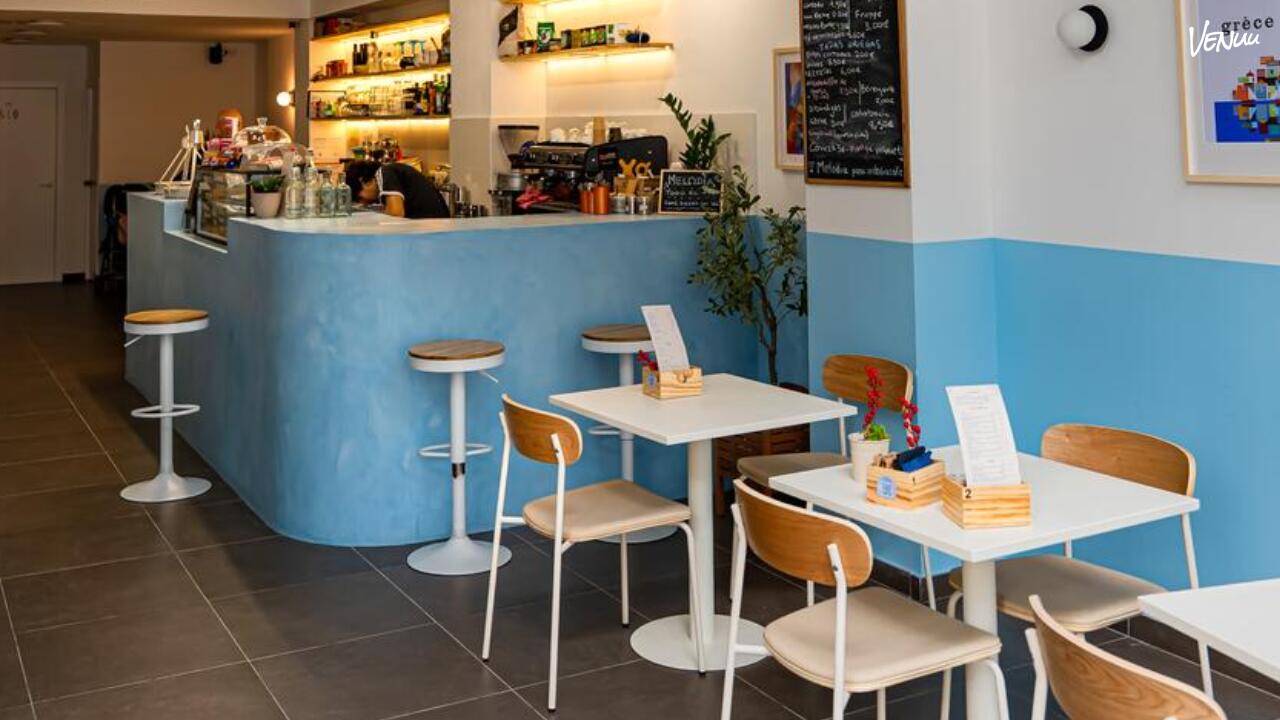 La decoración está inspirada en la arquitectura de los tradicionales "KAFENIOS", esos puntos de encuentro en los pueblos y las islas griegas. Con sus característicos tonos azules y blancos, te sentirás instantáneamente en una taberna de las Cícladas, disfrutando de un ambiente acogedor y relajado. Aquí, la experiencia es completa: los mezze salen en cascada de la cocina, mientras los cócteles tradicionales hacen bailar tus sentidos al ritmo de la música griega.