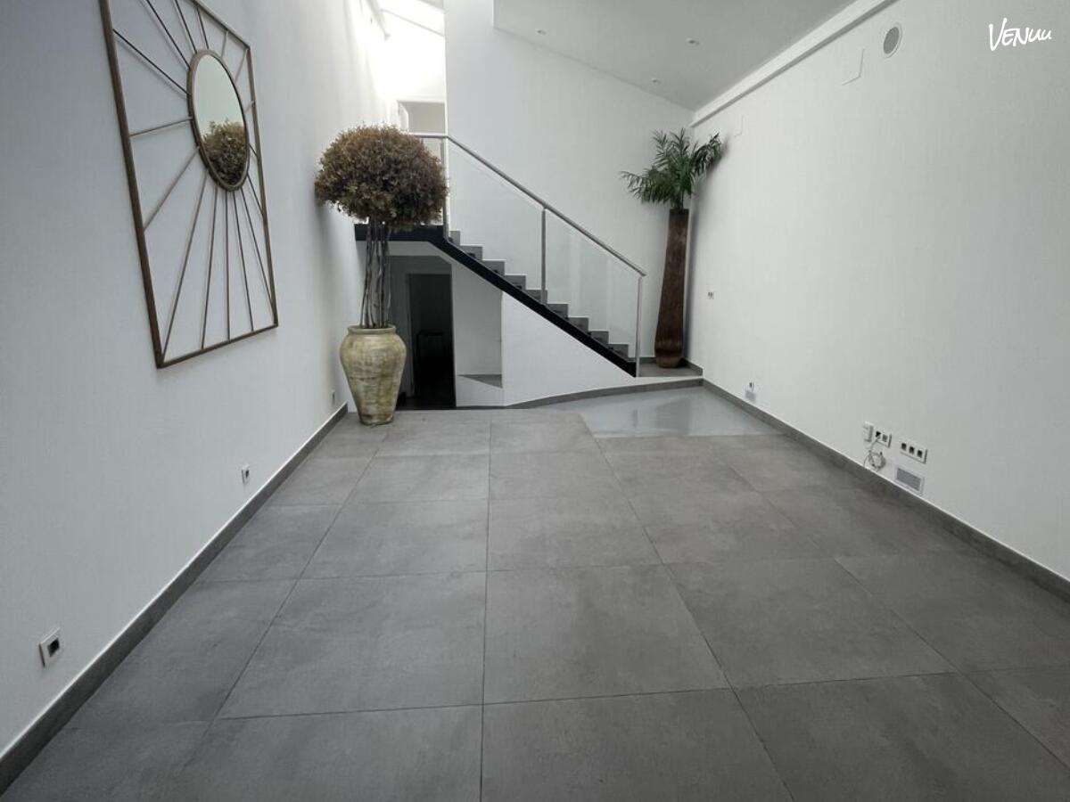 La joya del espacio es su sala diáfana de 50 m², con techos de 4,6 metros de altura y abundante luz natural equipada con equipo de sonido profesional, micrófonos, iluminación, proyector, pantalla HDMI, aire acondicionado y calefacción.