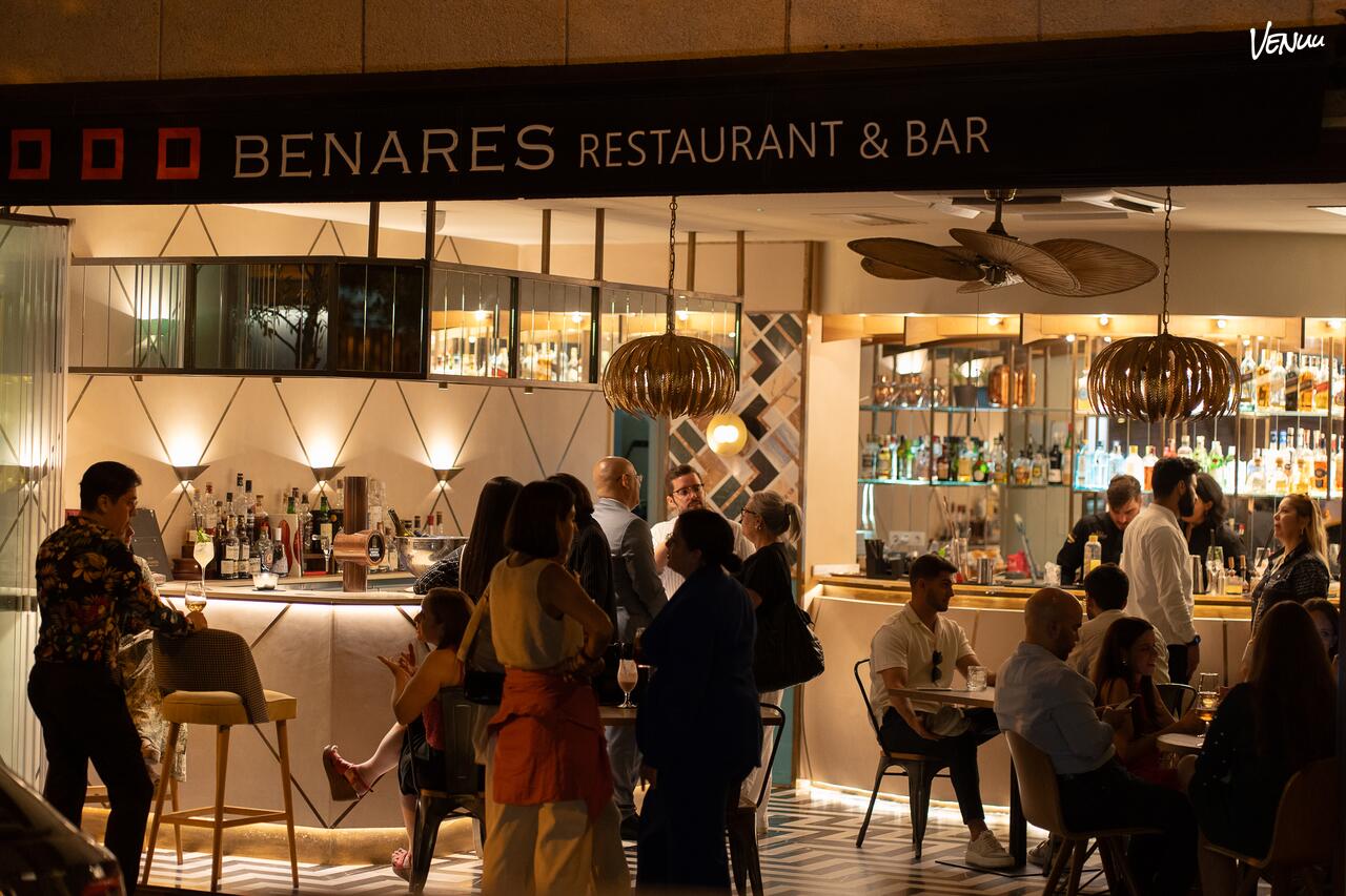 El bar de Benares se destaca por su decoración elegante, cosmopolita y exótica, con una cristalera a pie de calle que se puede abrir para crear una terraza cubierta. Es la zona perfecta para disfrutar de un buen cóctel, con una carta que incluye propuestas originales y los cócteles clásicos, además de numerosas opciones en long drinks, digestivos y destilados.