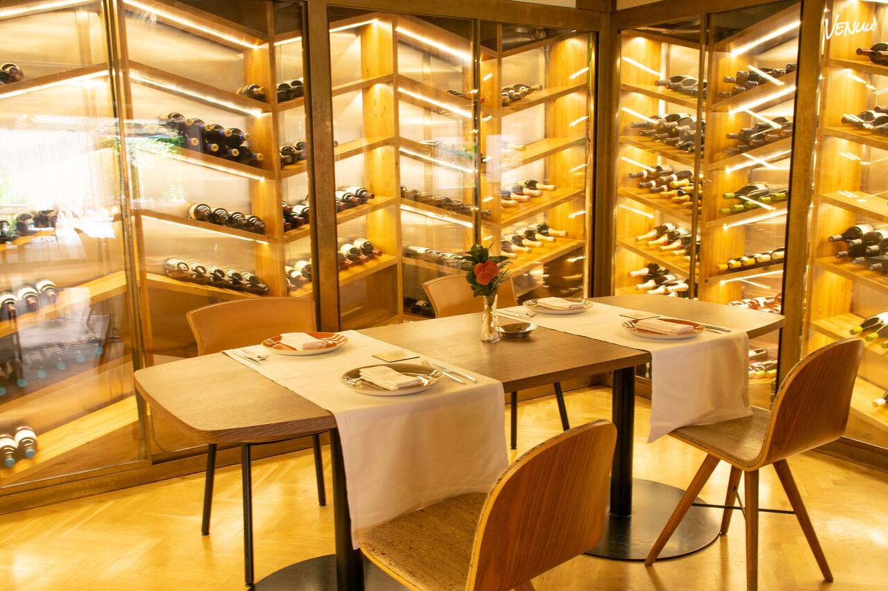 La bodega del Restaurante Benares es un espacio exclusivo y sofisticado, con capacidad para hasta 6 comensales. Este entorno íntimo es perfecto para degustar una selección excepcional de vinos de todo el mundo, rodeado de referencias vitivinícolas reconocidas y rarezas únicas. Nuestra carta de vinos, cuidadosamente curada, ofrece una experiencia enológica inigualable, guiada por nuestro experto sumiller.