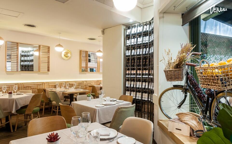 El restaurante destaca por su versatilidad, ofreciendo desde una zona de barra dinámica para un picoteo gourmet hasta amplios salones ideales para encuentros de negocios. Su propuesta culinaria gira en torno al Tesoro del Patrimonio Español: el jamón 100% ibérico de bellota, acompañado de carnes a la brasa y recetas tradicionales actualizadas con una técnica impecable.