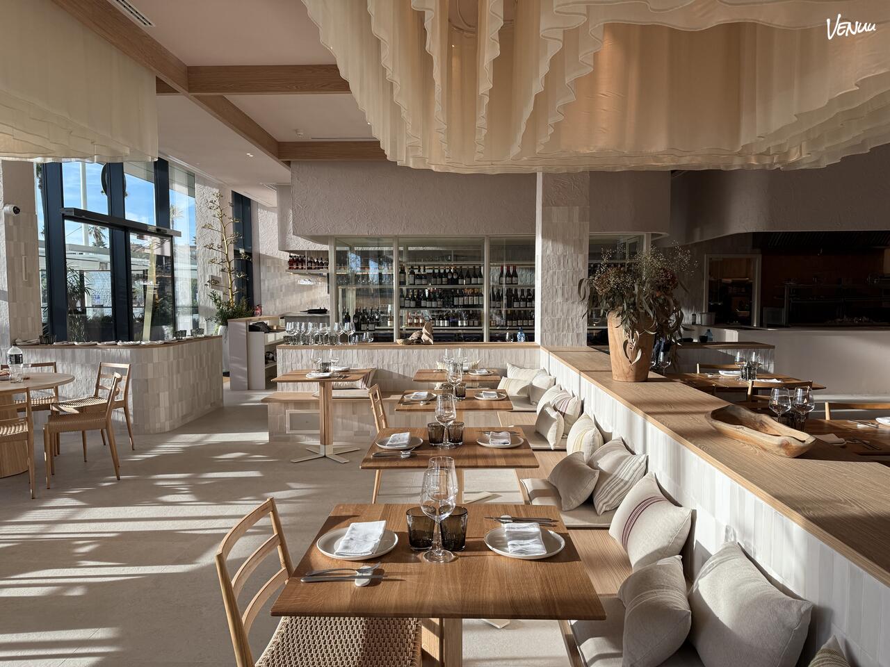 Con 203 m² de espacio, el salón interior de Nuara te da la bienvenida a un ambiente que combina la amplitud con una calidez excepcional. Su estilo mediterráneo y elegante, enmarcado por grandes ventanales, ofrece vistas privilegiadas al Puerto Olímpico e inunda el espacio de luz natural, conectando la energía del exterior con la tranquilidad de tu evento.