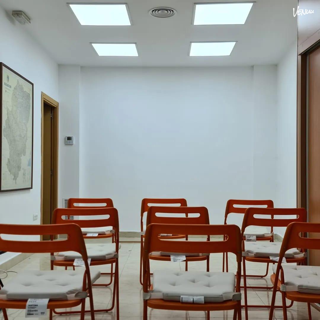 A disposición: mesas ,sillas, espejos, esterillas, colchones mantas, wifi, proyector, pizarra, climatizador, frigorífico, microondas, altavoz, dos aseos... Durante toda la estancia disponible zona bar, karaoke y futbolín.
