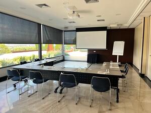 Elegante sala ejecutiva ubicada en el Hotel Sardinero, en pleno corazón de Madrid. Diseñada para reuniones, presentaciones y eventos corporativos de pequeño formato. Cuenta con una mesa central, butacas de cuero, pantalla, WiFi y climatización. Su ambiente sofisticado y privado la convierte en una opción ideal para encuentros profesionales o sesiones estratégicas. El hotel ofrece también servicios de restauración y coffee breaks.