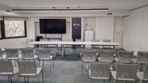 Sala moderna y funcional situada en el centro de Madrid. Ideal para conferencias, formaciones, reuniones o eventos empresariales. Está equipada con pantalla, proyector, WiFi y mobiliario adaptable. Su diseño luminoso y minimalista proporciona un entorno profesional y agradable para los asistentes. Además, ofrece opciones de alquiler flexible y servicios complementarios bajo petición.