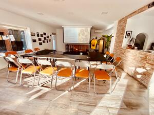Espacio donde realizar formaciones, talleres y workshops. Viene con una pequeña zona office donde puede prepararse un coffee break.