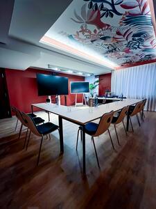 ¿Quieres darle un toque moderno y urbano a tus reuniones? La sala de reuniones del Room Mate Gerard es el lugar perfecto. Con su decoración moderna y su capacidad para 50 personas, es ideal para reuniones más íntimas.