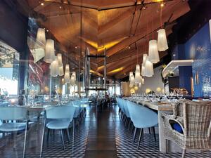 Un restaurante con vistas espectaculares y un comedor privado elegante. Disfruta de una experiencia gastronómica exclusiva en un ambiente moderno y acogedor. ¡Perfecto para encuentros especiales con estilo!