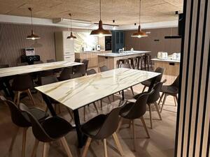 Veranstal es un espacio multifuncional en Zaragoza que destaca por su diseño contemporáneo y su distribución abierta, ideal para eventos gastronómicos como showcookings. Equipado con una cocina totalmente funcional, iluminación cuidada y mobiliario adaptable, permite crear experiencias únicas tanto para grupos pequeños como para eventos de mayor tamaño.