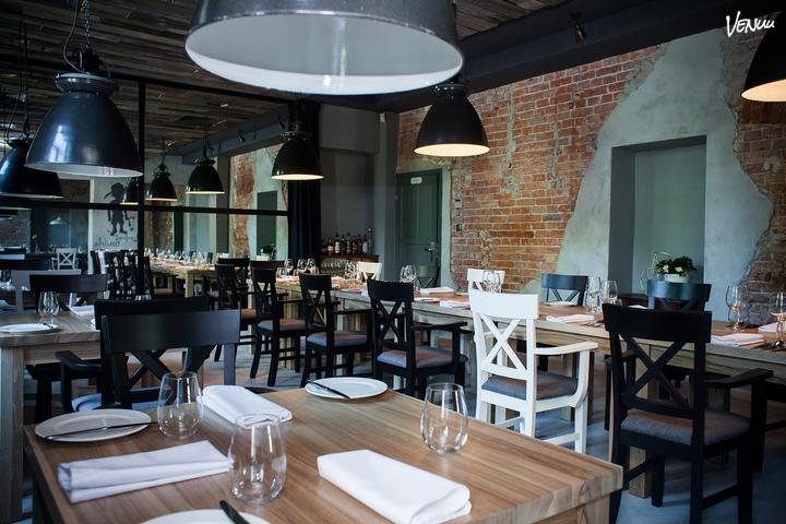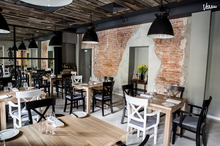Przestrzeń tej unikalnej restauracji utrzymana jest w nieformalnej, niemalże swawolnej atmosferze. Klimatu dodają ściany z odkrytą, czerwoną cegłę i betonem a także ciepłe, punktowe oświetlenie. To wszystko, w połączeniu z drewniany sufitem, daje poczucie przytulnej elegancji.