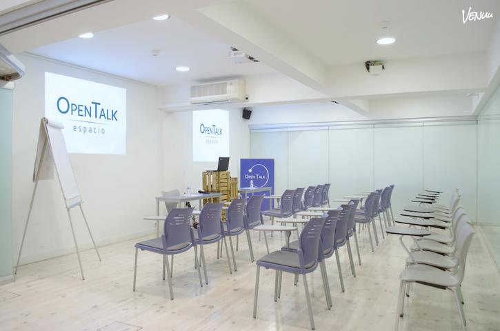 OpenTalk, con sus 500m2 en el corazón de Madrid, ofrece espacios para cada ocasión. Cualquier idea o evento es posible, nos adaptamos a tus necesidades. OpenTalk es moderno, completamente equipado y preparado para la realización de todo tipo de eventos, ya sean comerciales o formativos. Alquiler de espacios por horas, media jornada o jornada completa. Además de salas de formación, cuenta con profesionales instalaciones de cocina para la preparación de catering.