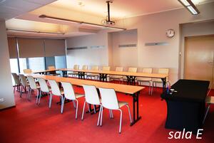 Sala posiada pełne zaplecze multimedialne, opcję zaciemnienia oraz dostęp do naturalnego światła.