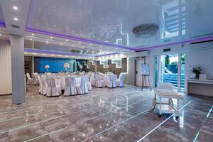Idealna przestrzeń na organizację przyjęć z tańcami, w gronie najbliższych. Neutralna kolorystyka sali pozwala na ogranizację wydarzeń różnego typu.