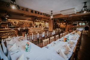 Sala czeladna to idealne miejsce na organizację wesela, a altana na zewnątrz będzie doskonałą opcją na zaślubiny w plenerze.